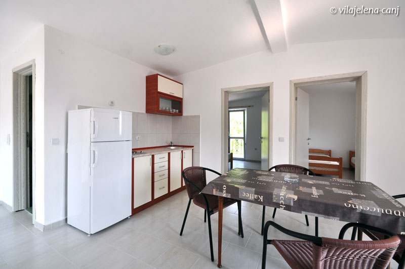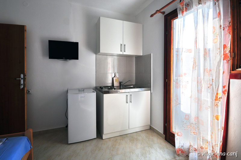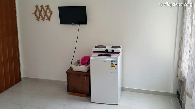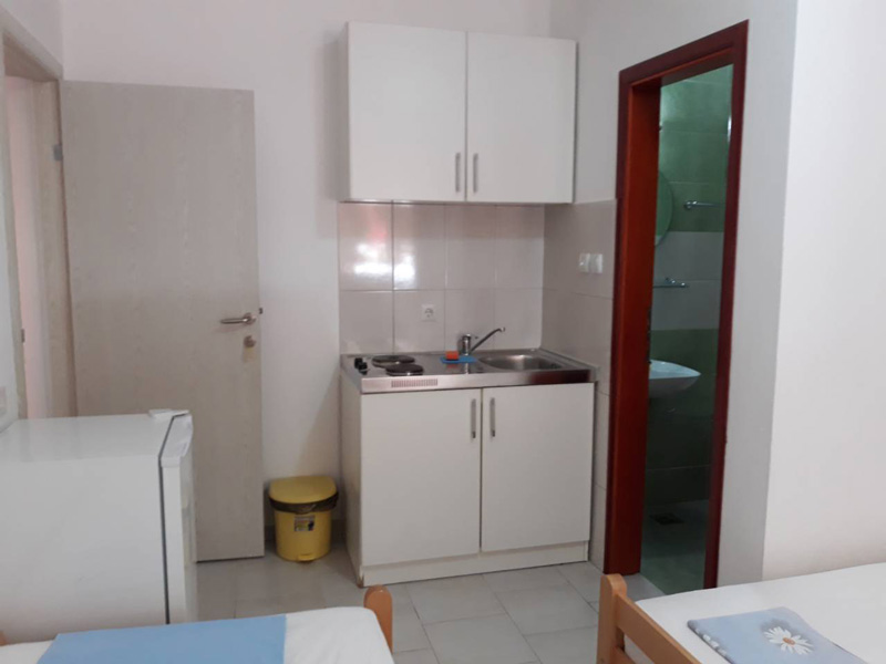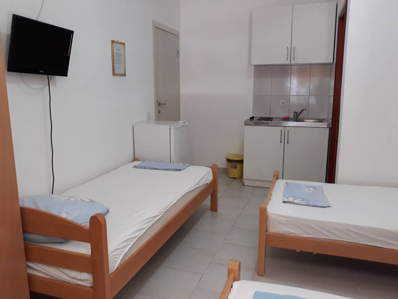 Raspolaže sa tri dvokrevetne sobe u kojima se nalazi rešo i frižider. Svaka soba ima svoje kupatilo, tv i terasu. Takođe poseduje četiri studija, koji imaju svoje kupatilo, kuhinju, tv i terasu.