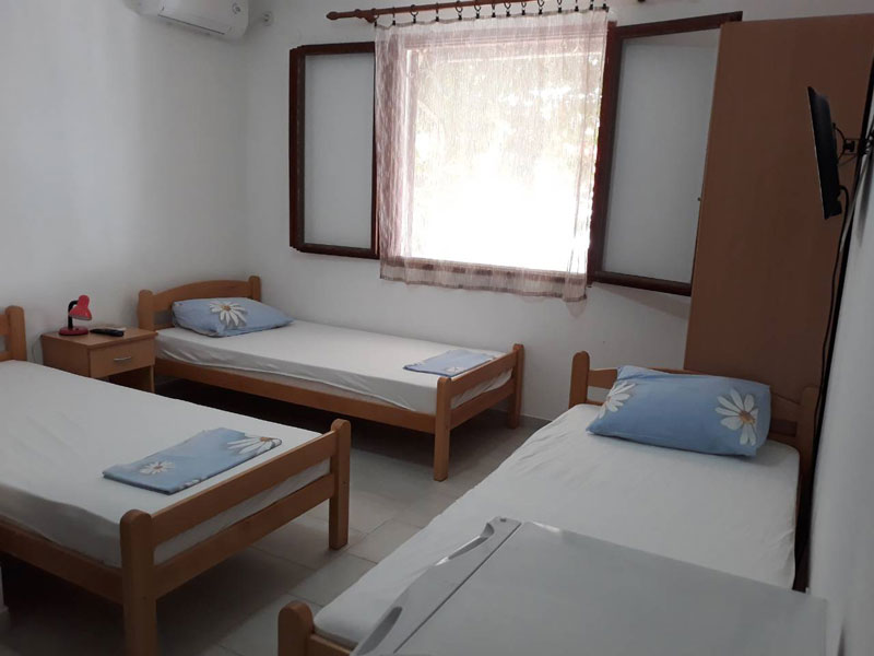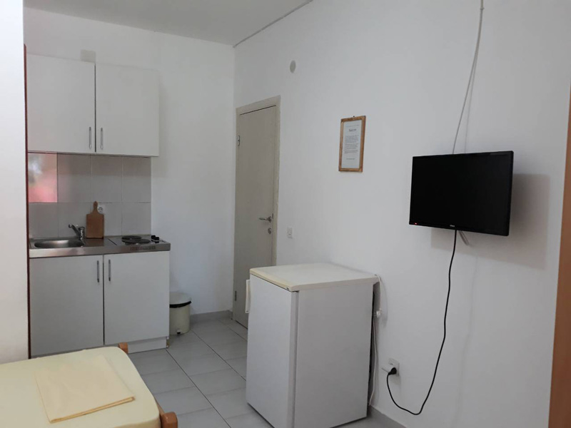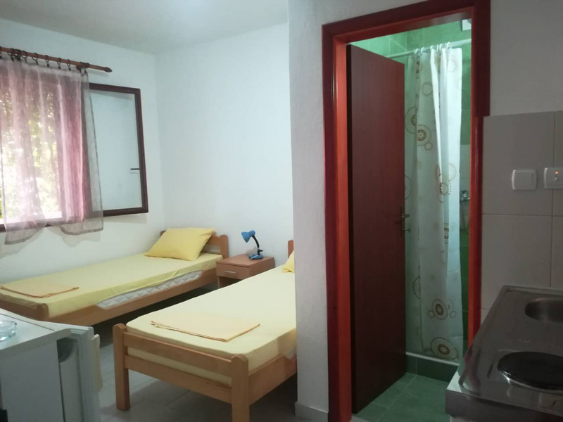 Raspolaže sa tri dvokrevetne sobe u kojima se nalazi rešo i frižider. Svaka soba ima svoje kupatilo, tv i terasu. Takođe poseduje četiri studija, koji imaju svoje kupatilo, kuhinju, tv i terasu.